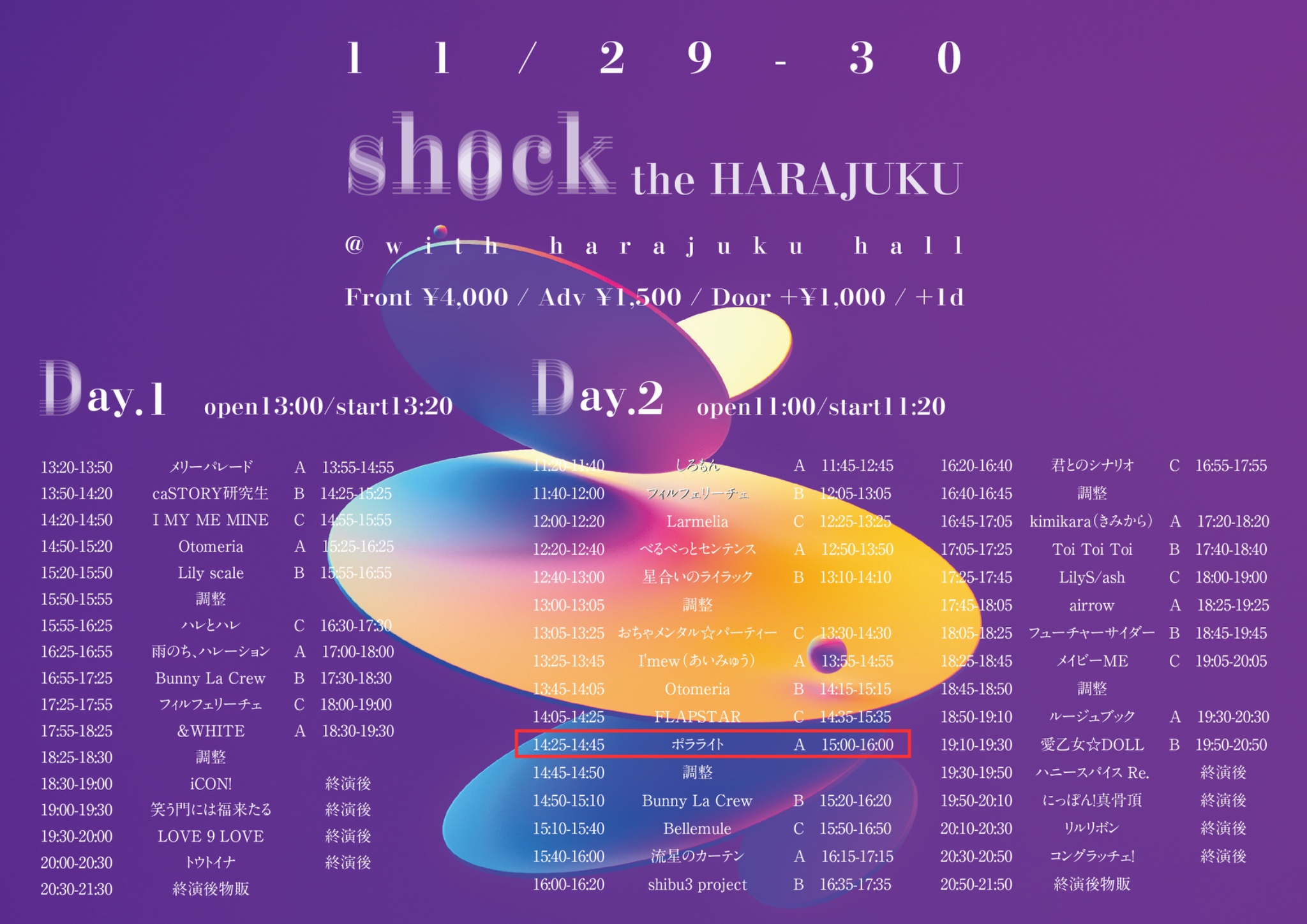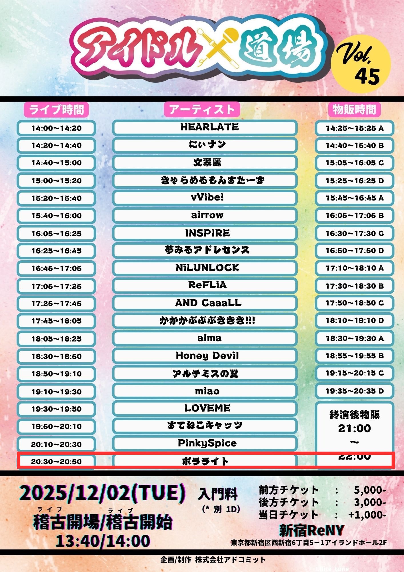 踊れ!神風/KissBee/PinkySpice/I MY ME MINE/&WHITE/しろもん/ストロボグリッター/フィルフェリーチェ/ギガLOVEアップビート/SWANTICK/すてねこキャッツ/テンシメシ໒3/未完成のキャラメル/ポラライト/Aproof/MOON RABBiTS