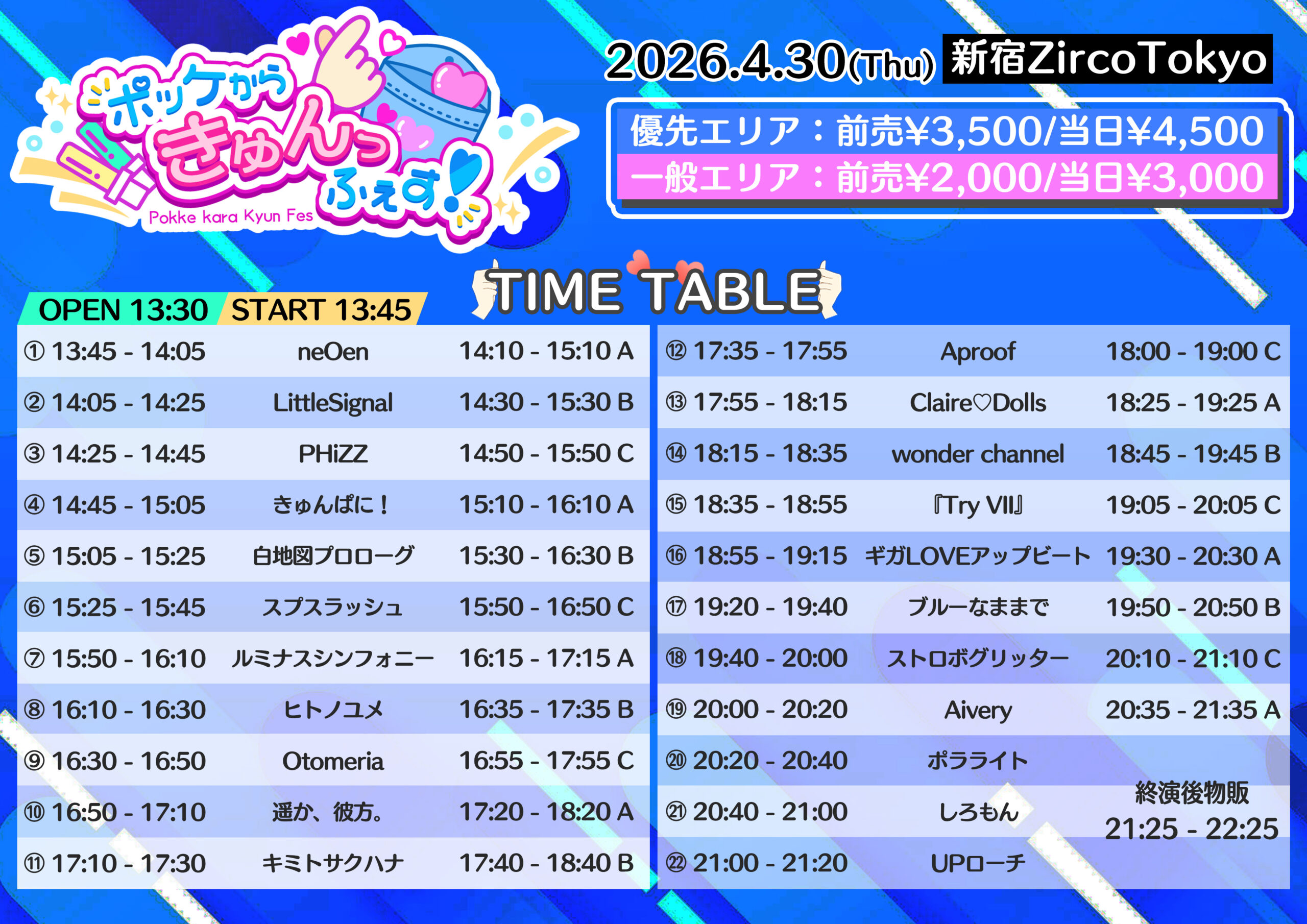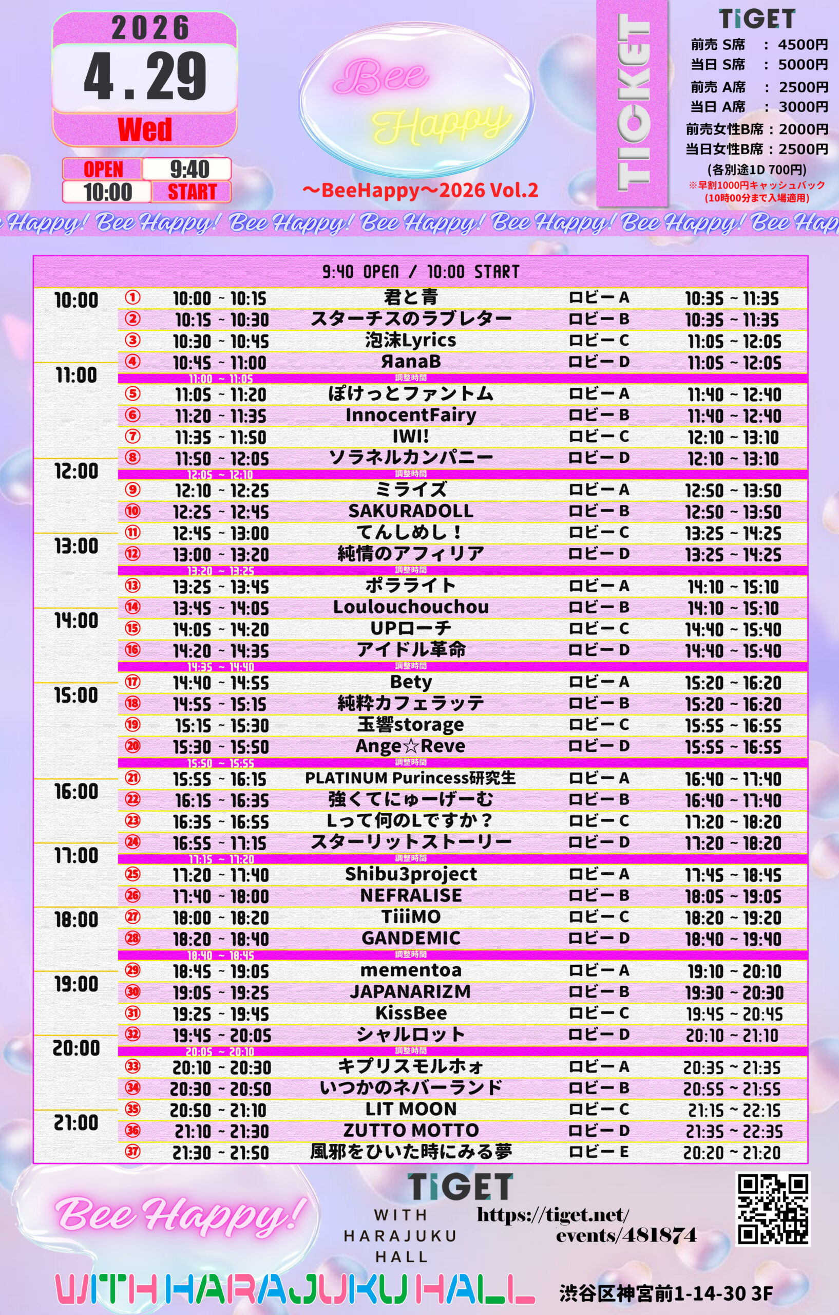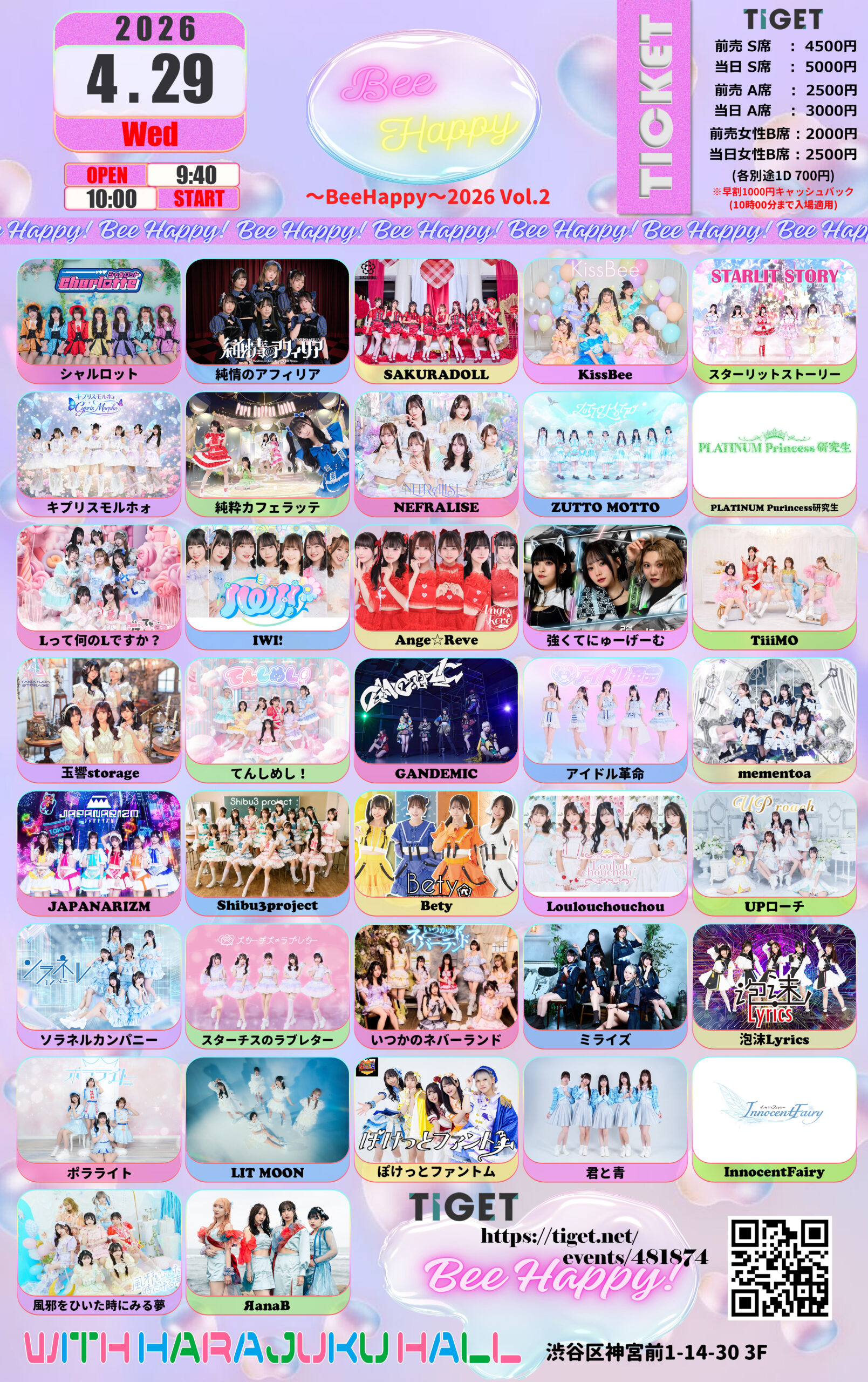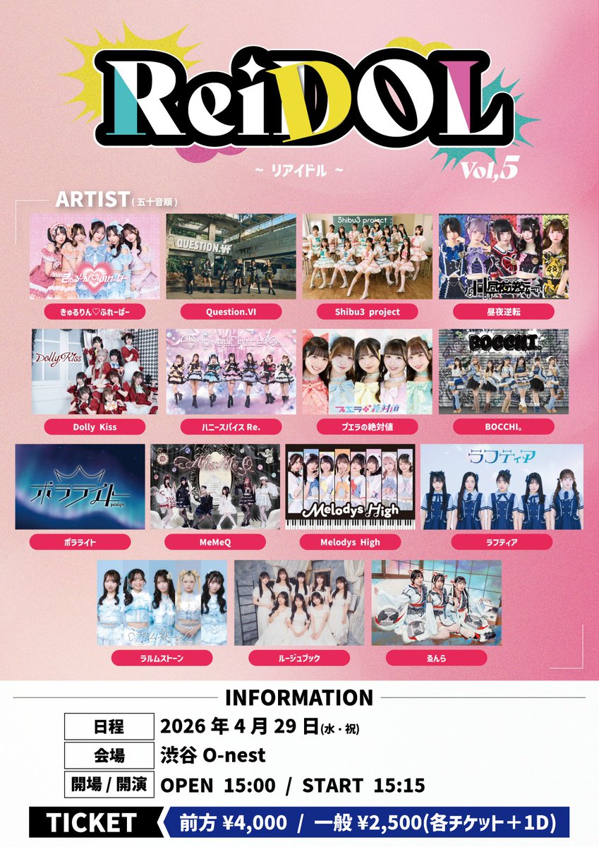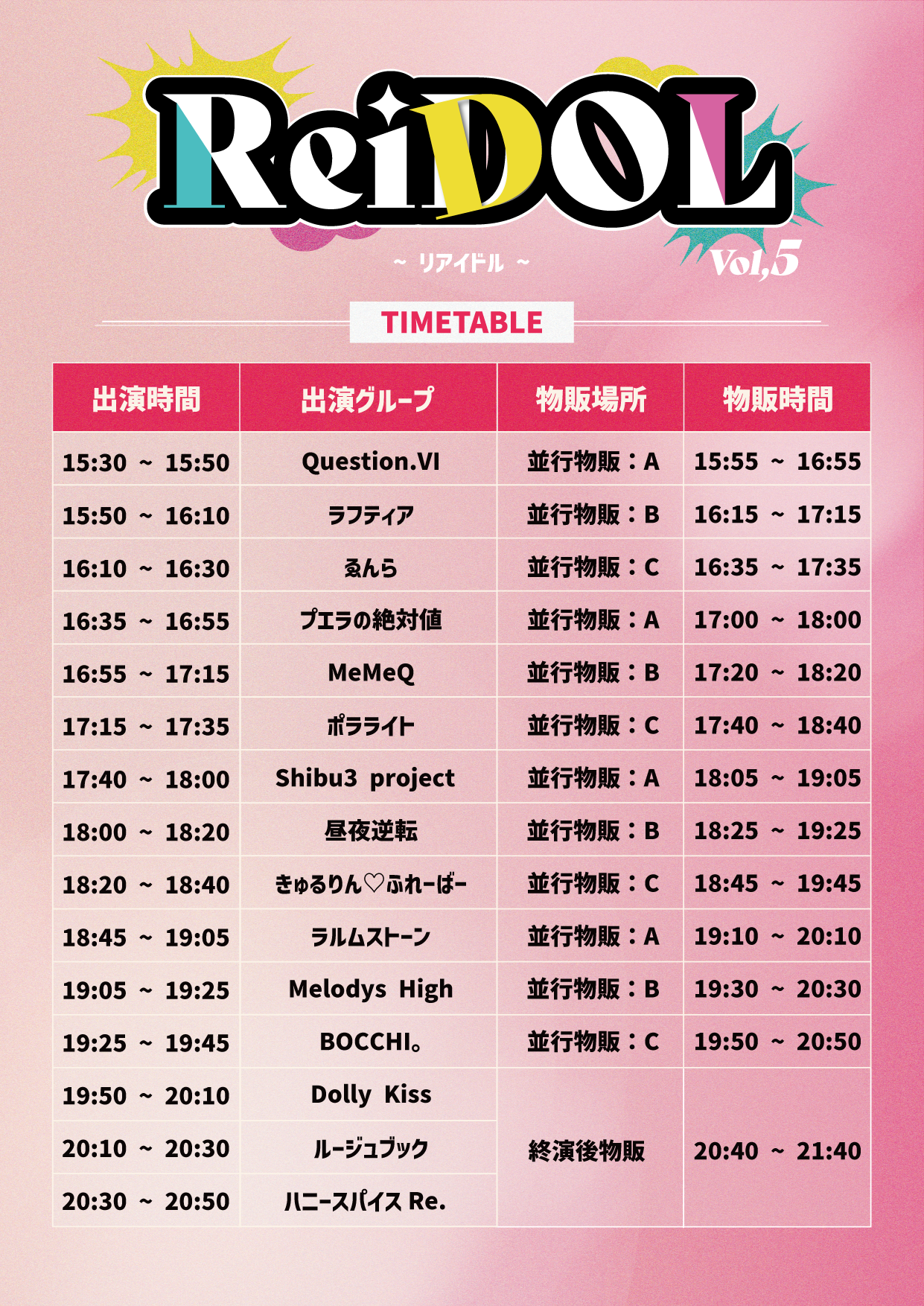 きゅるりん♡ふれーばー / Question.VI / Shibu3 project / Dolly Kiss / ハニースパイスRe. / プエラの絶対値 / BOCCHI。 / ポラライト / MeMeQ / Melodys High / ラフティア / ラルムストーン / ルージュブック / ゑんら / 昼夜逆転