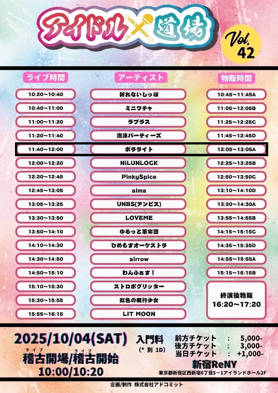 虹色の飛行少女/泡沫パーティーズ/alma/LOVEME/NiLUNLOCK/airrow/ポラライト/PinkySpice/ひめもすオーケストラ/UNBS(アンビス)/ストロボグリッター/LIT MOON/ゆるっと革命団/ラプラス/わんふぁす!