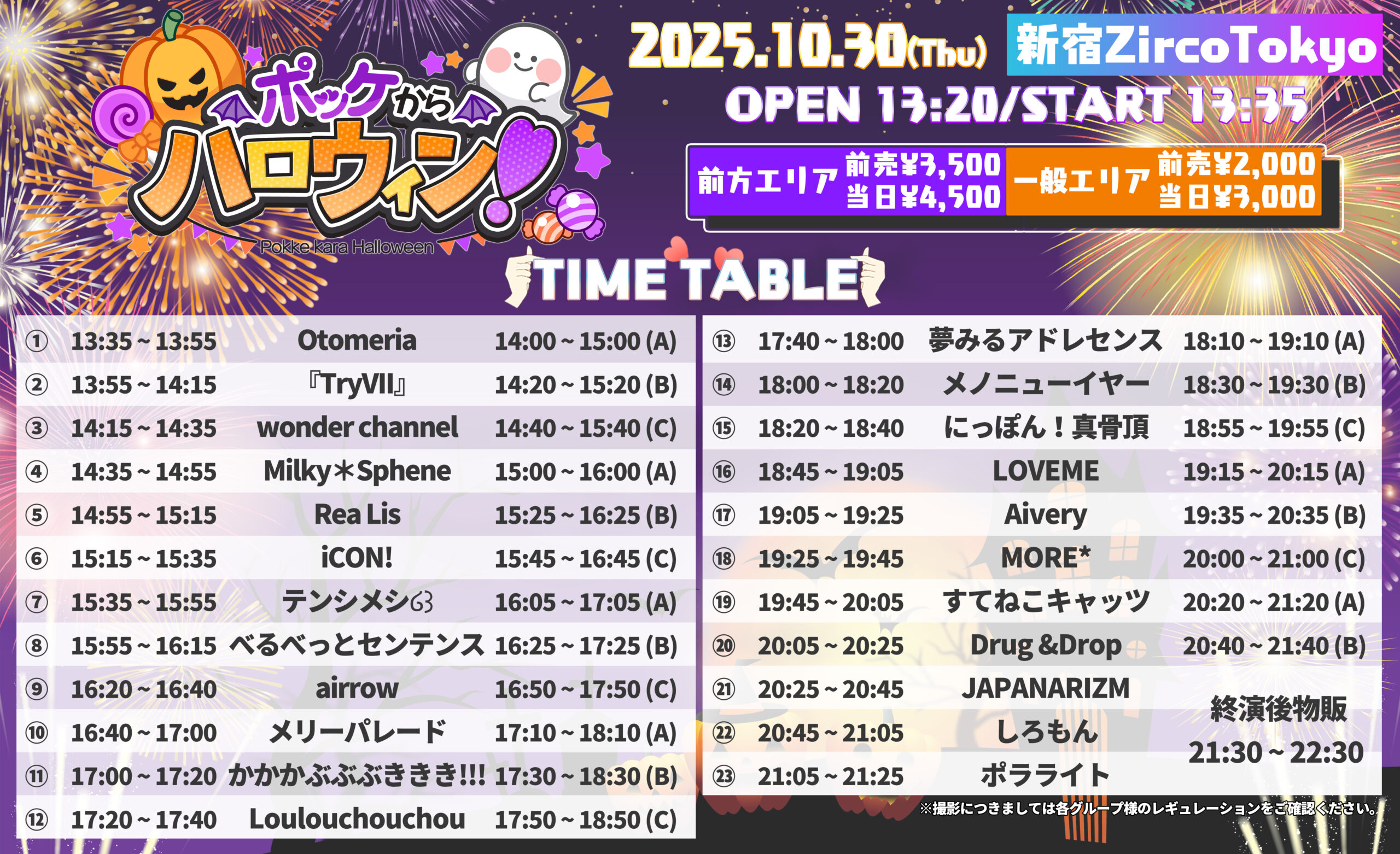 優先エリア¥3,500/優先当日¥4,500 一般前売¥2,000/一般当日¥3,000