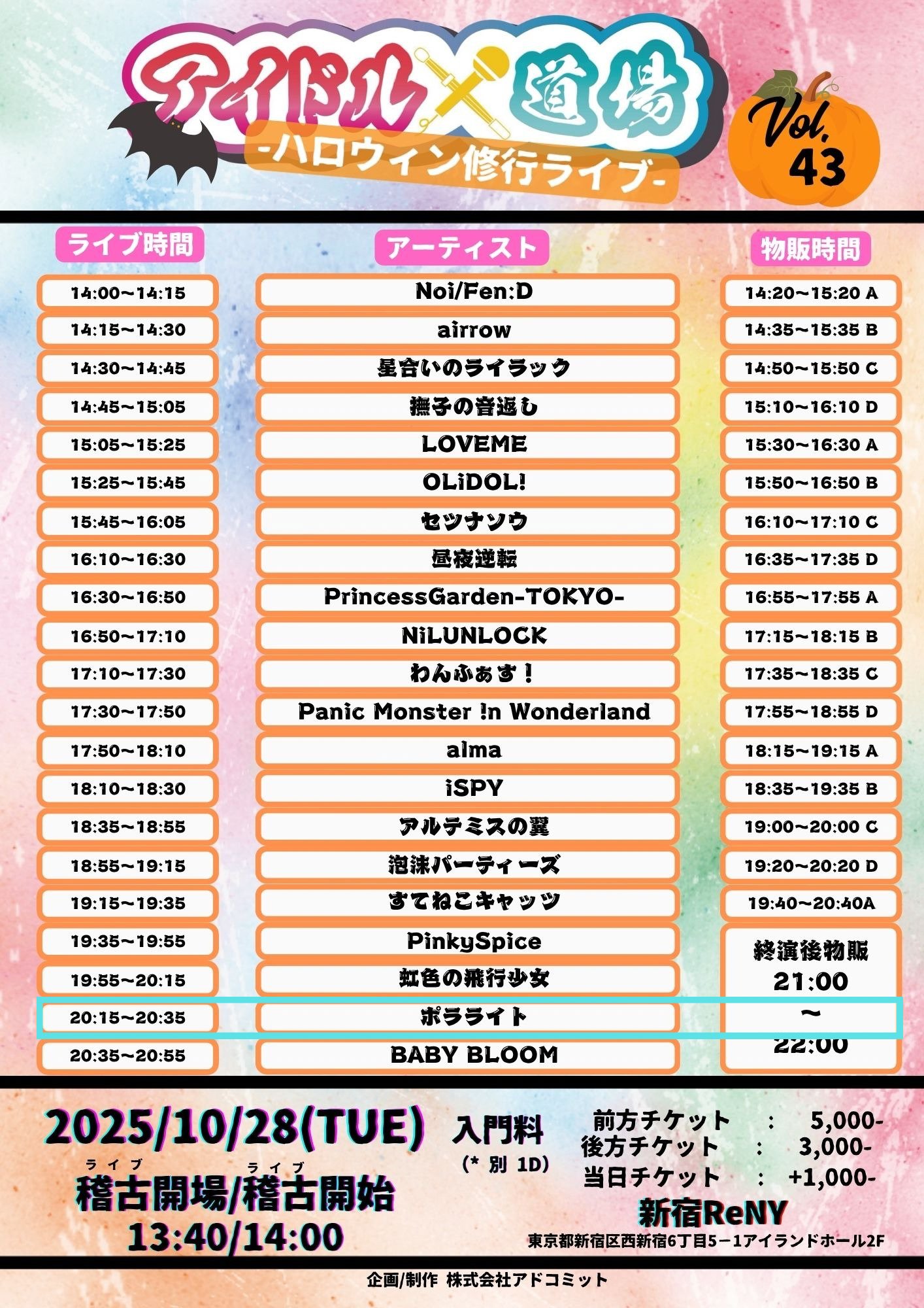 「アイドル道場 Vol. 43 -ハロウィン修行ライブ-」