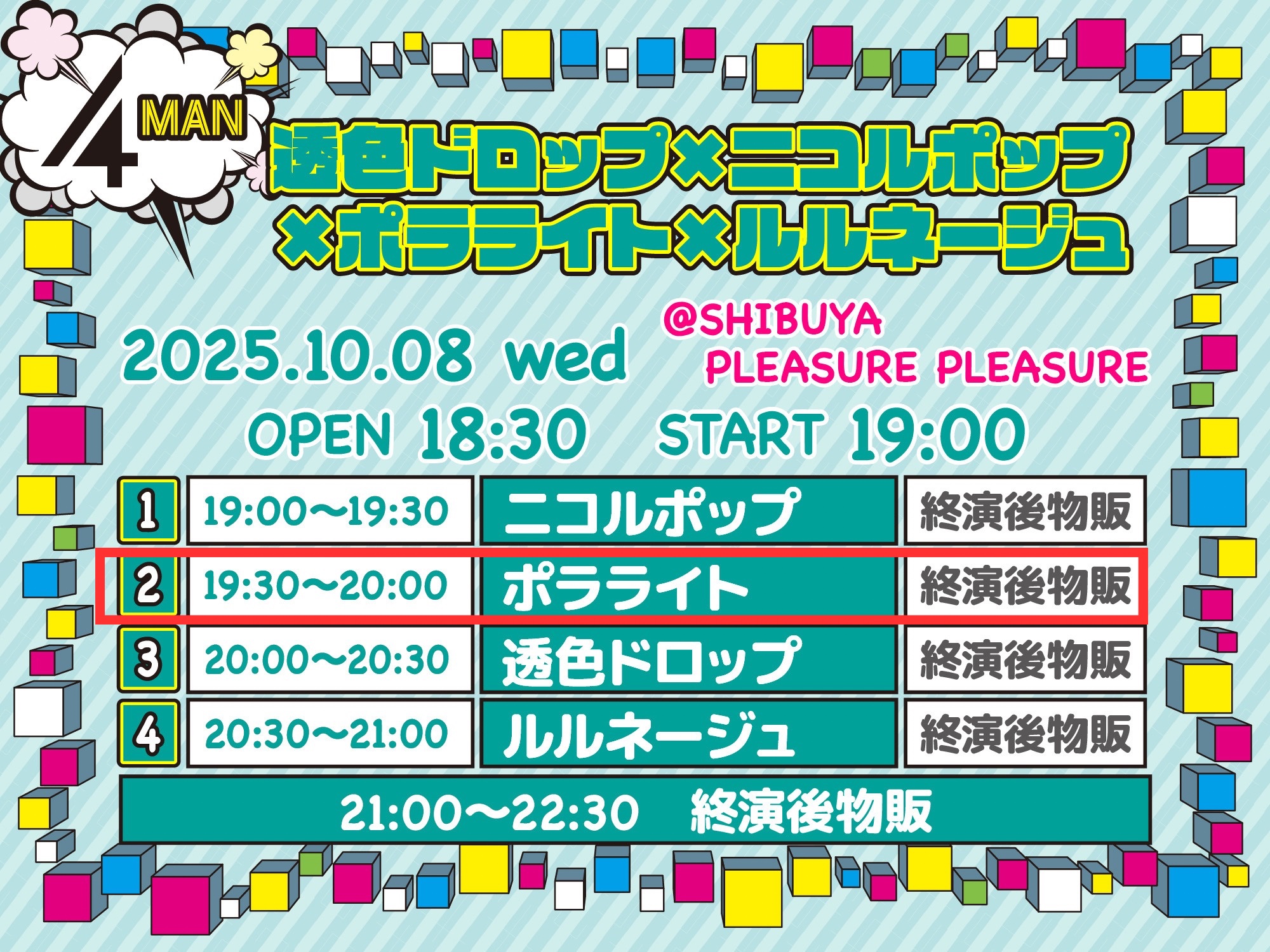 =============== 出演19:30~20:00 物販21:00~22:30 指名入場特典:サイン付きチェキ券