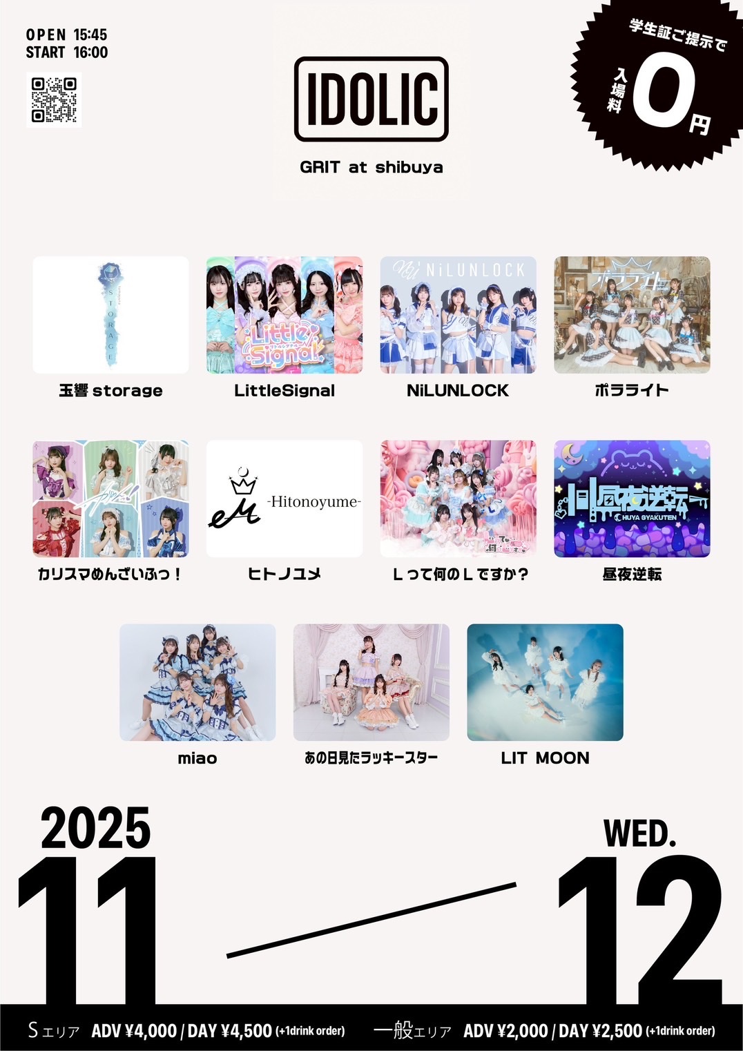 エリア¥4,000/一般エリア¥2,000/学生¥0/当日各+¥500