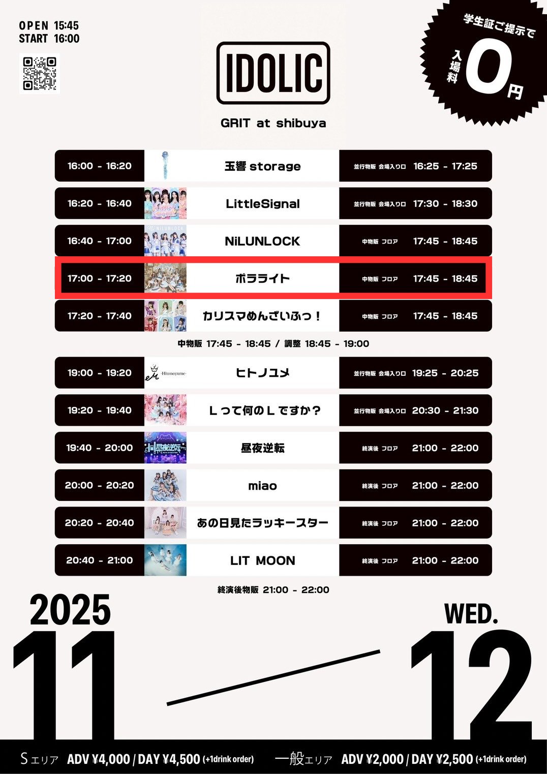 優先エリア¥3,500/優先当日¥4,500 一般前売¥2,000/一般当日¥3,000